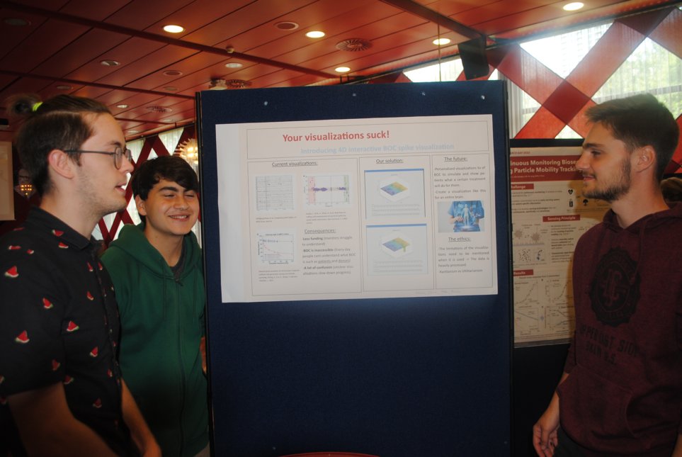 During the course, students were invited to give poster presentations at a conference. While this wasn't initially planned, the opportunity arose in week 4 and was too valuable to miss. Although not officially part of the assignments we took it into account when grading. It also fit neatly into one of the submission requirements. As the students invested time in the poster presentations, us teachers used it as an opportunity to do a kind of oral assessment - more a chat and stream of compliments. Another reason we sholdn’t do so many oral interviews.