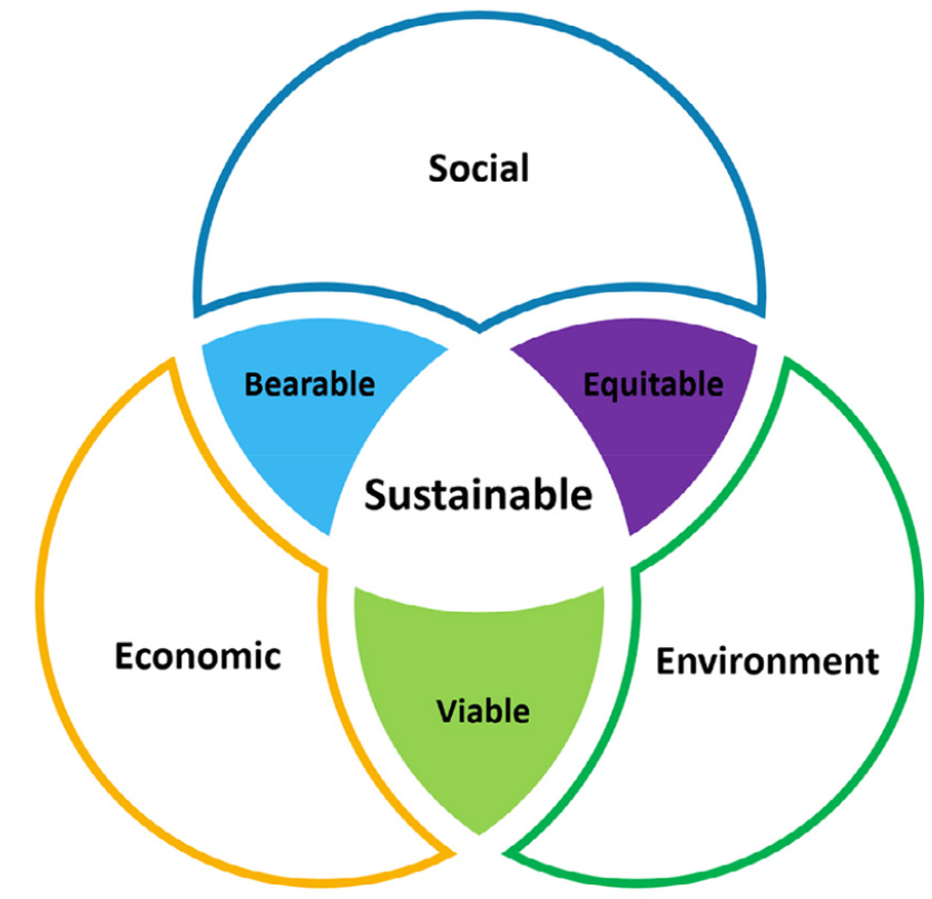 The three key components often associated with a general understanding of sustainability are planet, society, and economy (Elkington, 1997 – the Triple Bottom Line). We view sustainability as the pursuit of balance between actions, decisions, and their impacts on the environment and society. Actions are considered sustainable when they do not jeopardize planetary or social boundaries and, ideally, contribute positively to them. Additionally, we regard sustainability as a systemic concept, recognizing that actions or decisions with positive local effects can sometimes have negative global consequences. This interconnectedness plays a critical role in evaluating the overall sustainability of actions and decisions.